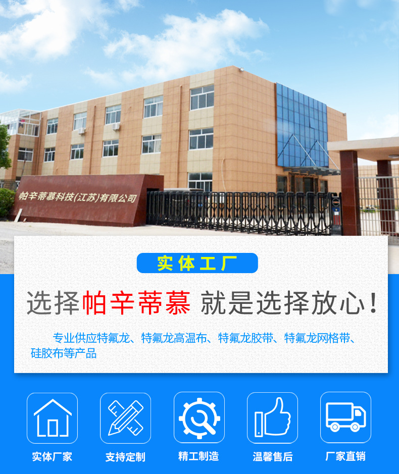 Copyright @ 2011-2018 帕辛蒂慕科技(江蘇)有限公司 All Rights Reserved. 版權(quán)所有 本站關(guān)鍵詞:特氟龍膠帶、特氟龍高溫布、鐵氟龍膜、特氟龍輸送帶、鐵氟龍膠帶 技術(shù)支持:泰州譽唯網(wǎng)絡